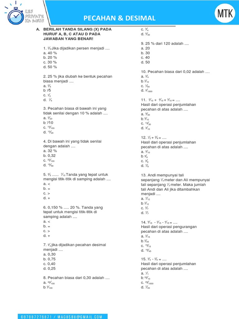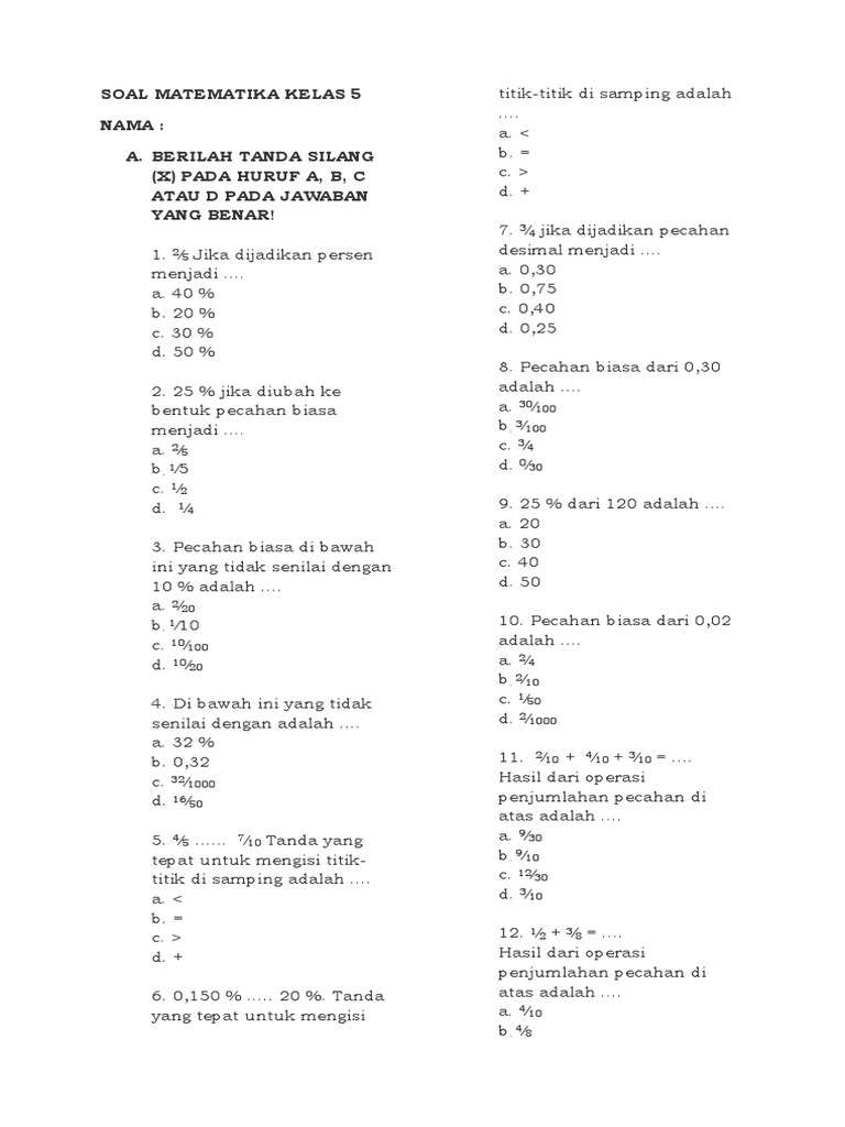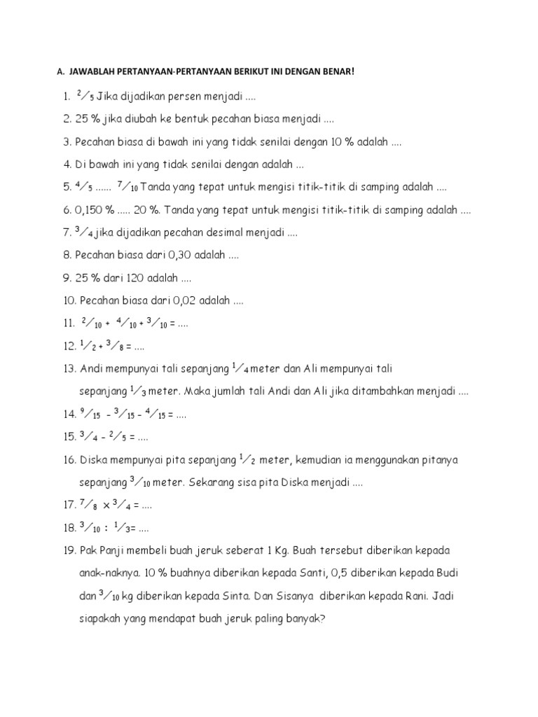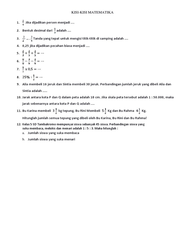 Soal Matematika Sd Kelas 4 Semester 2 Bab Pecahan