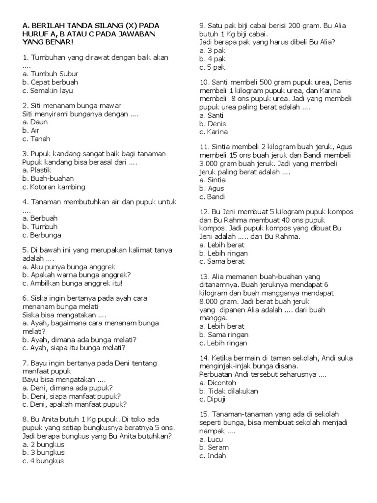 Pdf Soal Tematik Kelas 2 Tema 6 Subtema 4 Kurikulum 2013 Revisi 2018 Avinda Muanizt Academia Edu