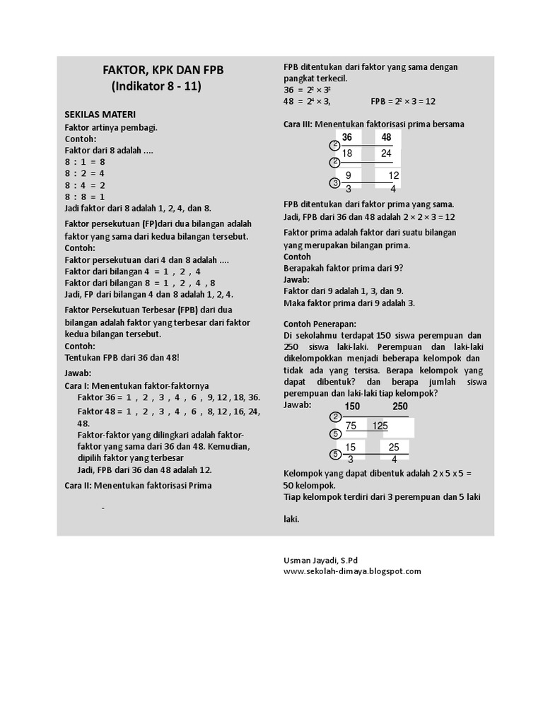 Cara Mengerjakan Kpk Dan Fpb Dengan Pohon Faktor Guru Ilmu Sosial