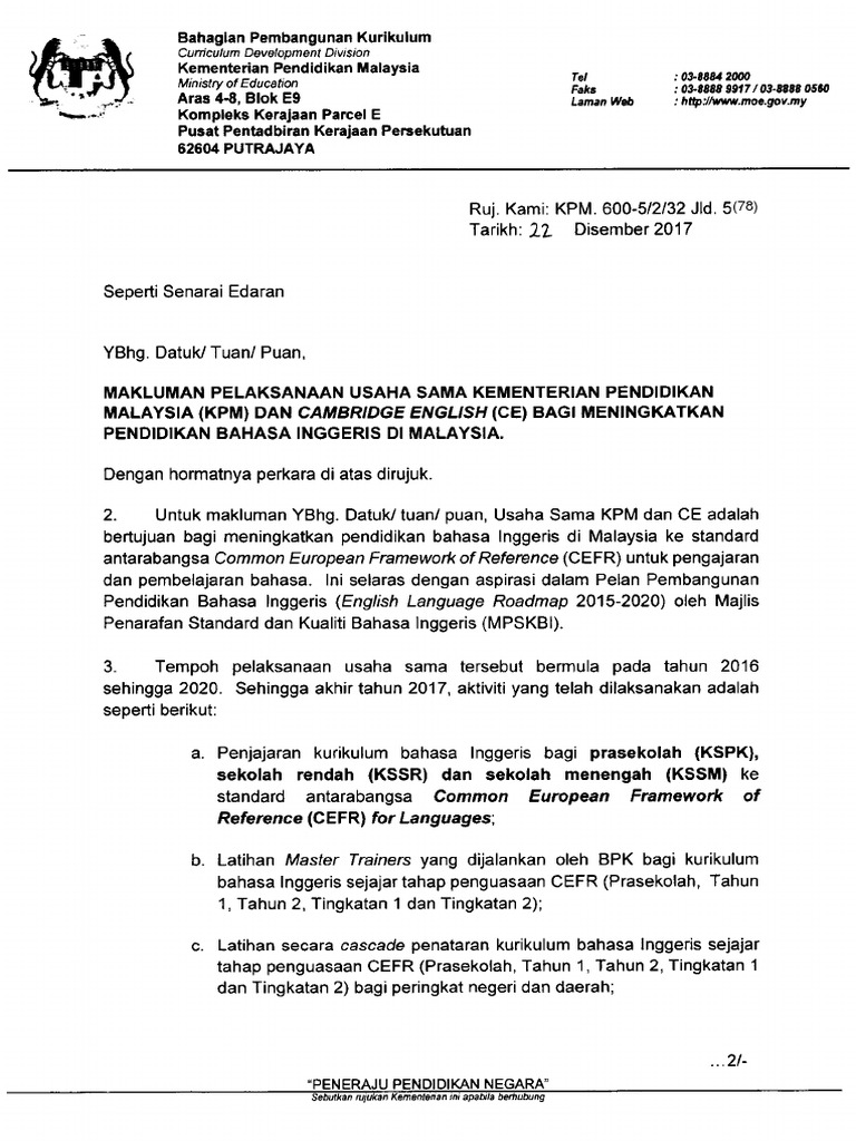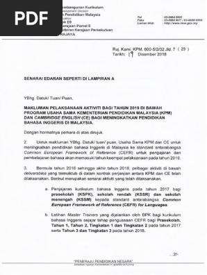Makluman آ Bertujuan Bagi Meningkatkan Pendidikan Bahasa Inggeris Di Malaysia Ke Standard Antarabangsa Download Pdf