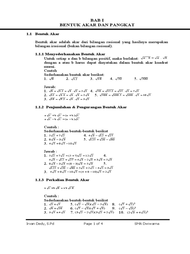 Akar Kuadrat Matematika Bersama Soal Soal Dan Jawaban