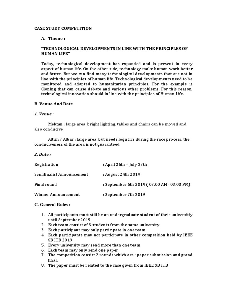 Case Study Competition A Theme Technological Developments In Line With The Principles Of Human Life Technology Business
