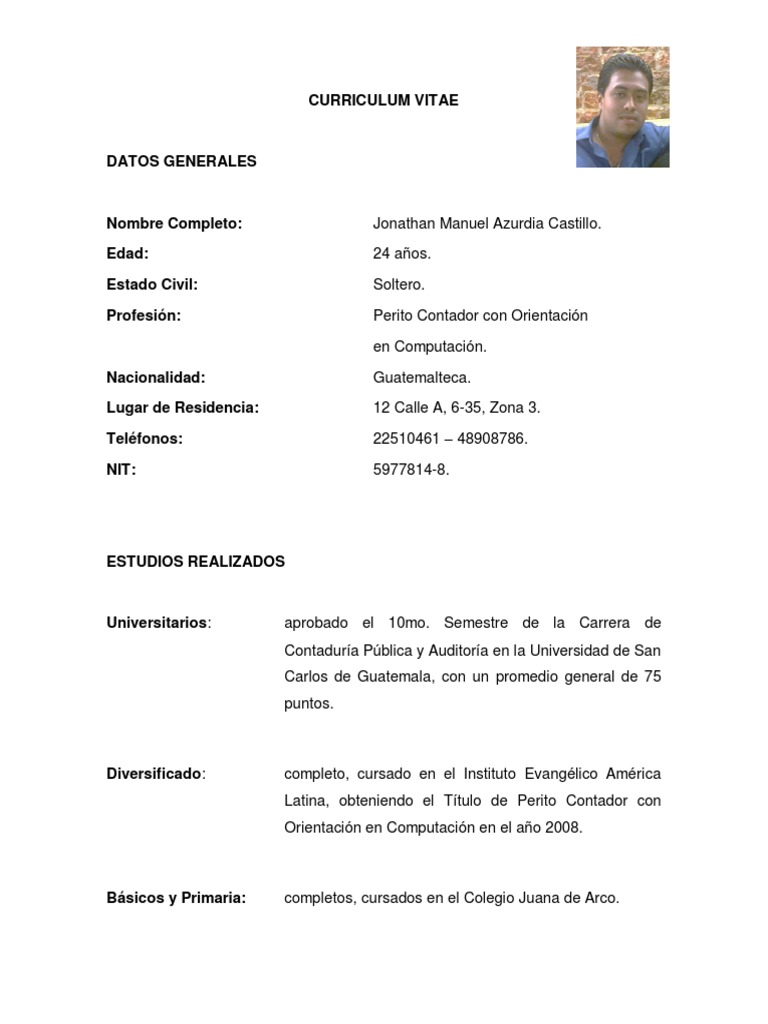 Ejemplos De Curriculum Vitae Para Descargar Gratis Cv Word