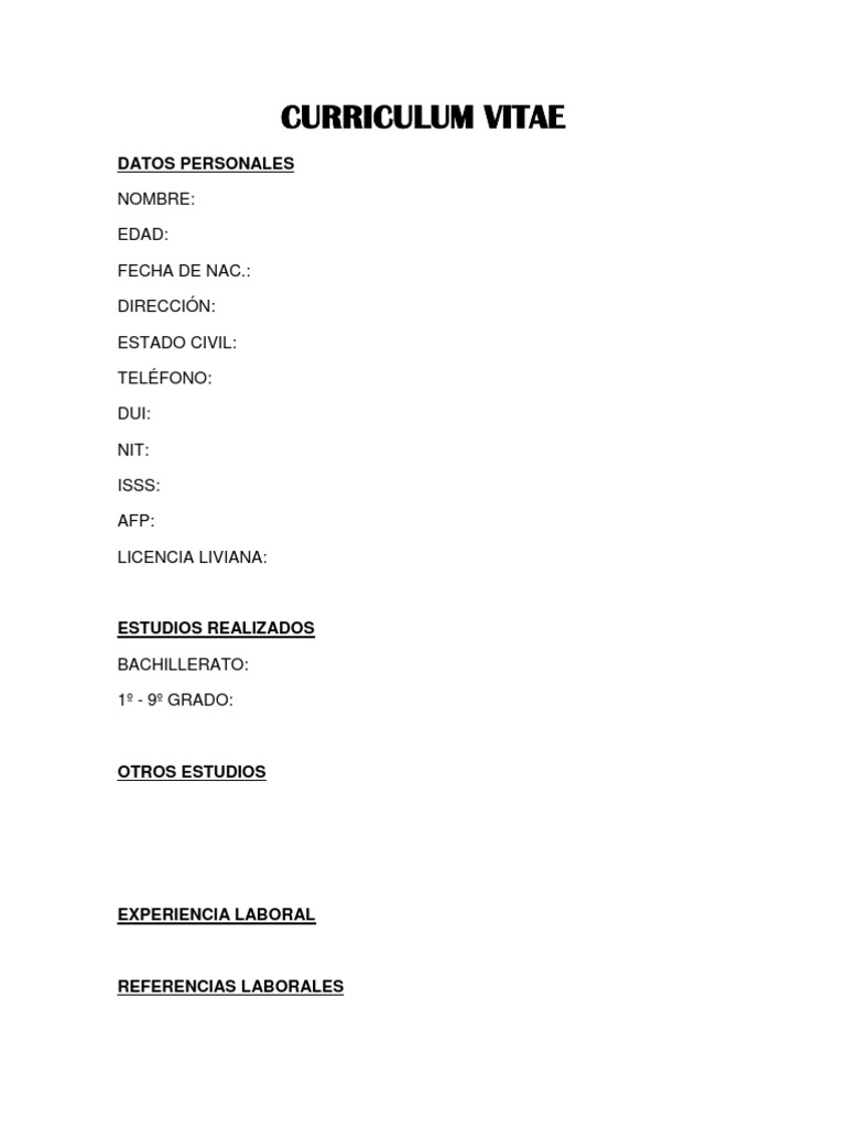 Formatos Curriculum Y Escritos Peticiones Juridicas Formato De Un Curriculum Vitae Sencillo Y Funcional