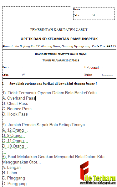 Download Soal Dan Kunci Jawaban Pts Uts Pjok Kelas 5 Semester 2 Sd Mi Kurikulum 2013 Sdn Sobang 2