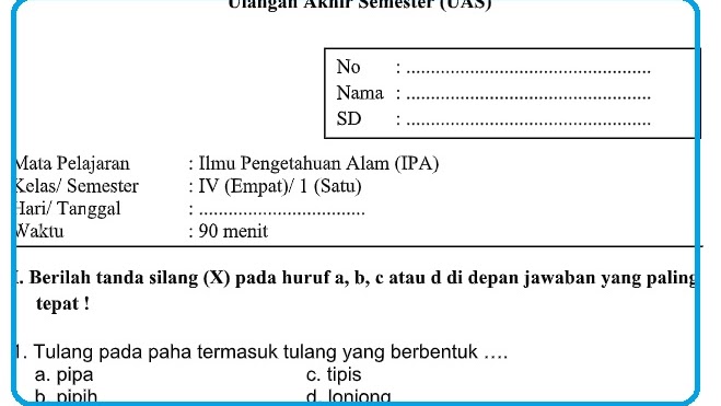 Kisi Kisi Soal Uas Semester 2 Kelas 2 3 4 Dan 5 Sd Soal Latihan Uas Semester 1 Kelas 4 Kurikulum