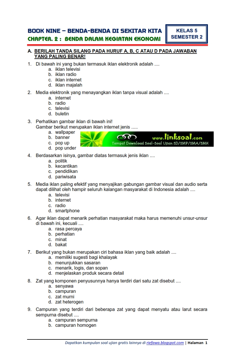 Contoh Soal Ujian Tengah Semester Kelas 1 Sd Bahasa Inggris Ilmu Pengetahuan 8