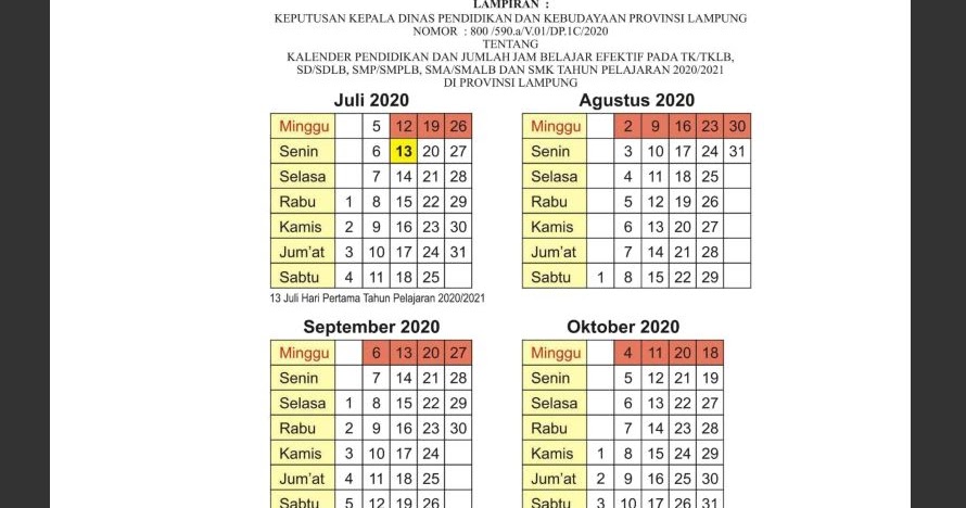 Kalender Pendidikan Provinsi Lampung Tahun Pelajaran 2020 2021 Tk Sd Smp Sma Smk Pendidikan Kewarganegaraan Pendidikan Kewarganegaraan