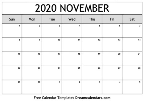 Free Printable Calendar November 2020 Free Printable 2020 November Calendar Blank Pdf Templates 2019 12 29