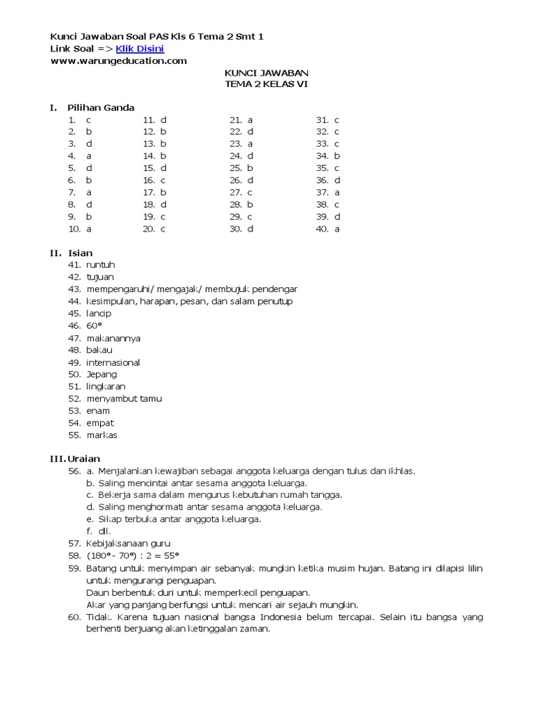 Kunci Jawaban Halaman 53 54 55 58 60 61 62 Kelas 6 Tema 2 Buku Tematik Siswa Kumpulan Soal Ujian