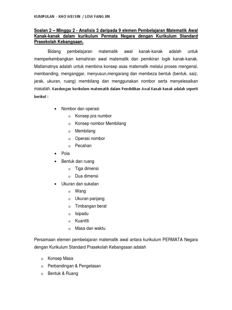 Laman Informasi Pendidikan Awal Kanak Kanak Kurikulum Permata Negara