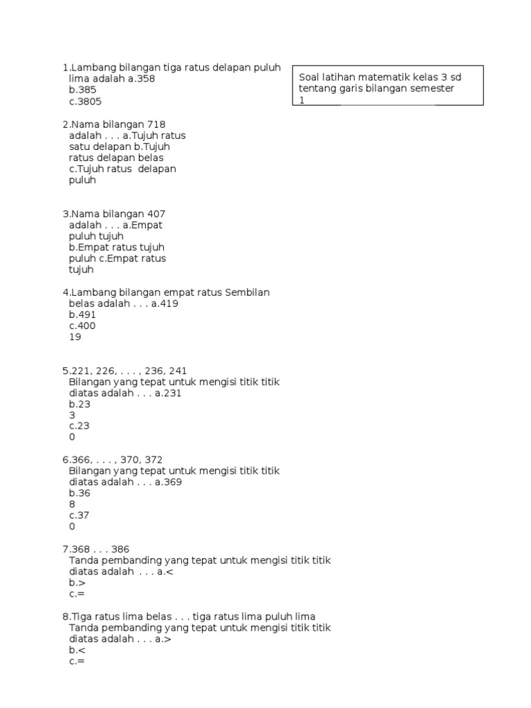 Contoh Soal Menulis Nama Bilangan 4 Sd