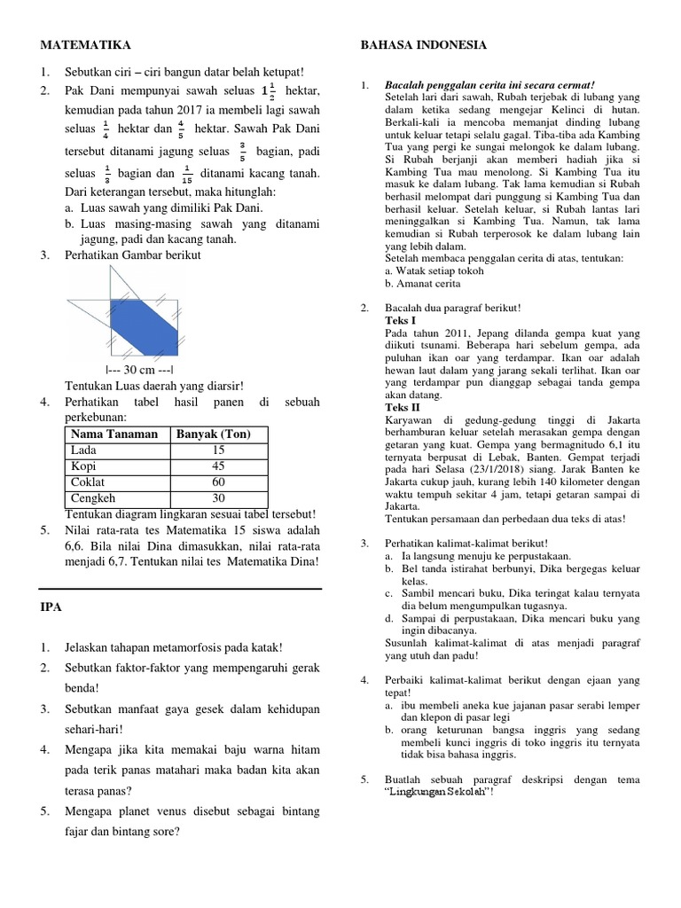 Soal Matematika Kelas 6 Sd Bab Pecahan Dan Kunci Jawaban Bimbel Brilian