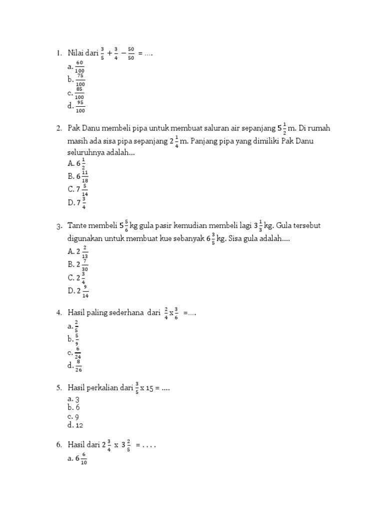 Contoh Soal Pecahan Campuran Kelas 5 Soal Cerita Kumpulan Soal Pelajaran 8