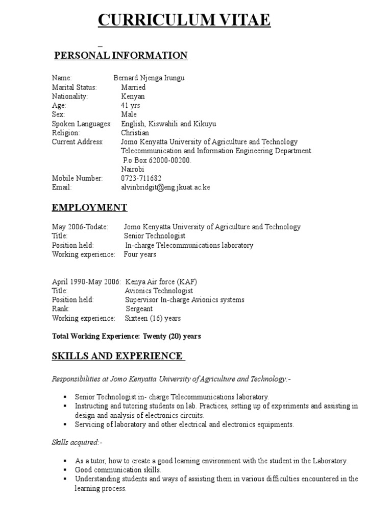 Best Cv Samples In Kenya Pdf Best Resume Examples