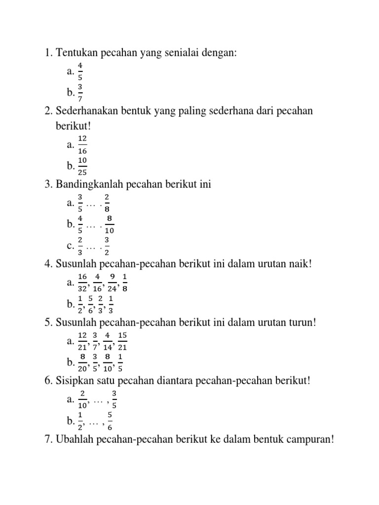 Ayo Berlatih Urutkan Pecahan Berikut Dari Yang Terkecil Ke Yang Terbesar Operator Sekolah