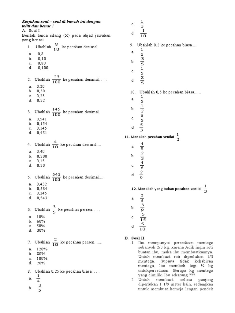 Contoh Soal Pecahan Desimal Menjadi Pecahan Biasa Kumpulan Soal Pelajaran 8