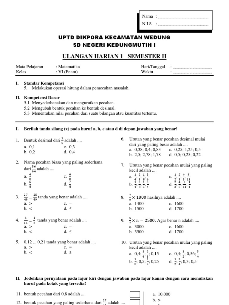 Contoh Soal Pecahan Desimal Menjadi Pecahan Campuran Kumpulan Soal Pelajaran 8