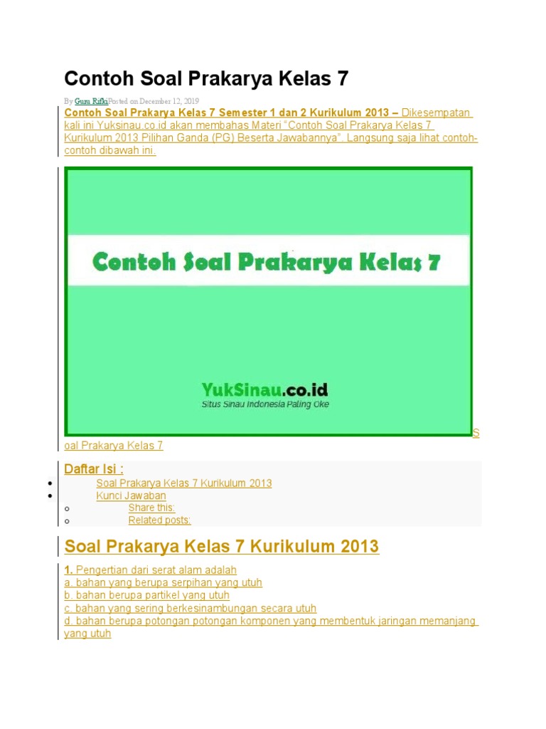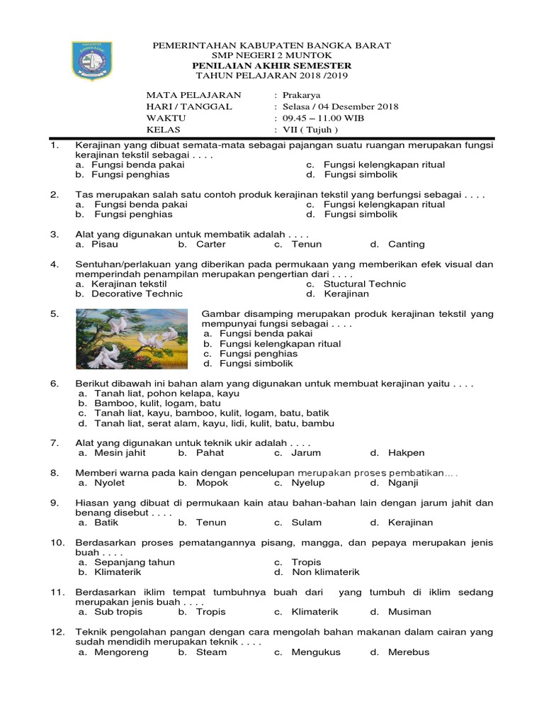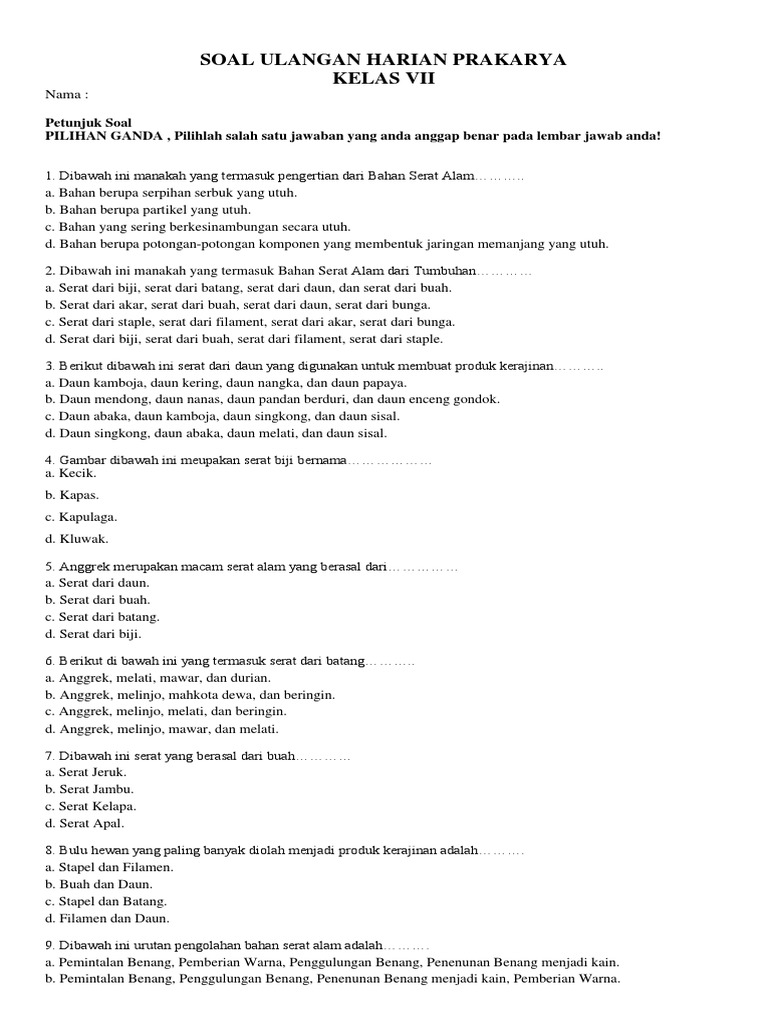 Prakarya Kelas 7 Fun Quiz Quizizz