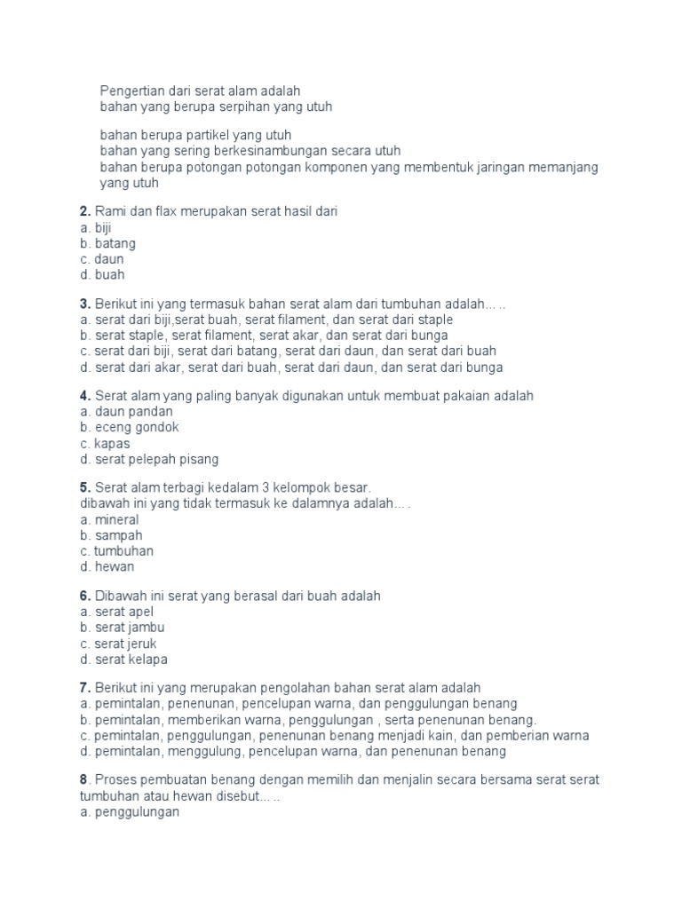 Pengertian Serat Alam Bahan Serat Adalah Suau Jenis Bahan Berupa Potongan Potongan Komponen Yang Membentuk Jaringan Memanjang Yang Utuh Menurut Kamus Amazing