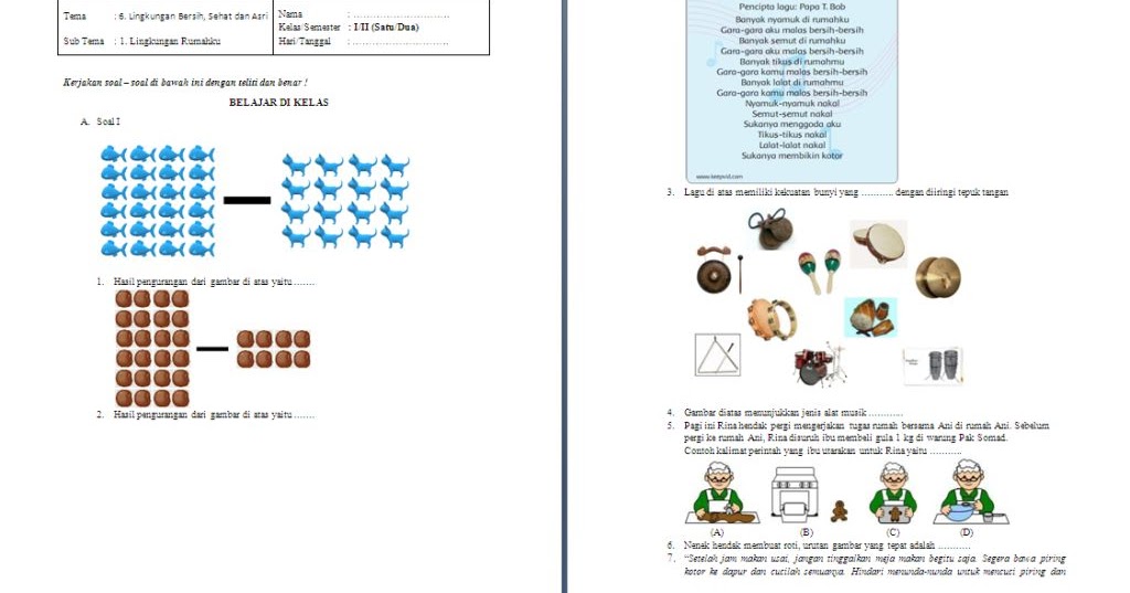 Pelajaran Matematika Kelas 1 Sd Penjumlahan Dan Pengurangan Bergambar