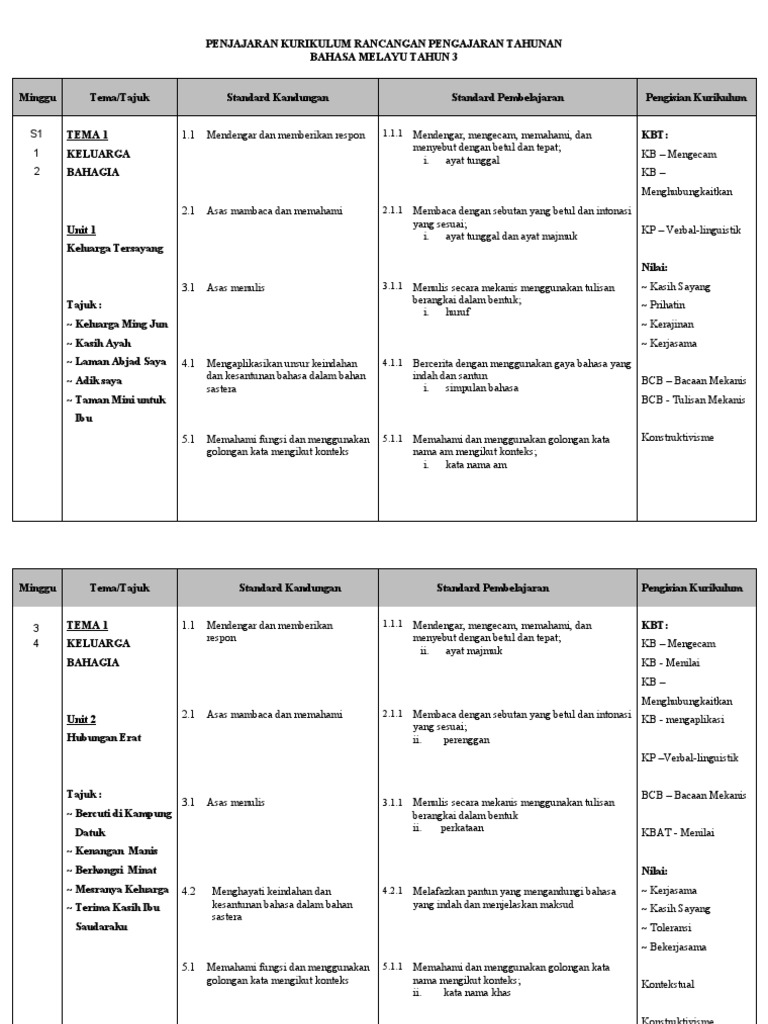 Dokumen Penjajaran Kurikulum 2020 English Year 1 6 Curriculum Aligned Documents Teacherfiera Com