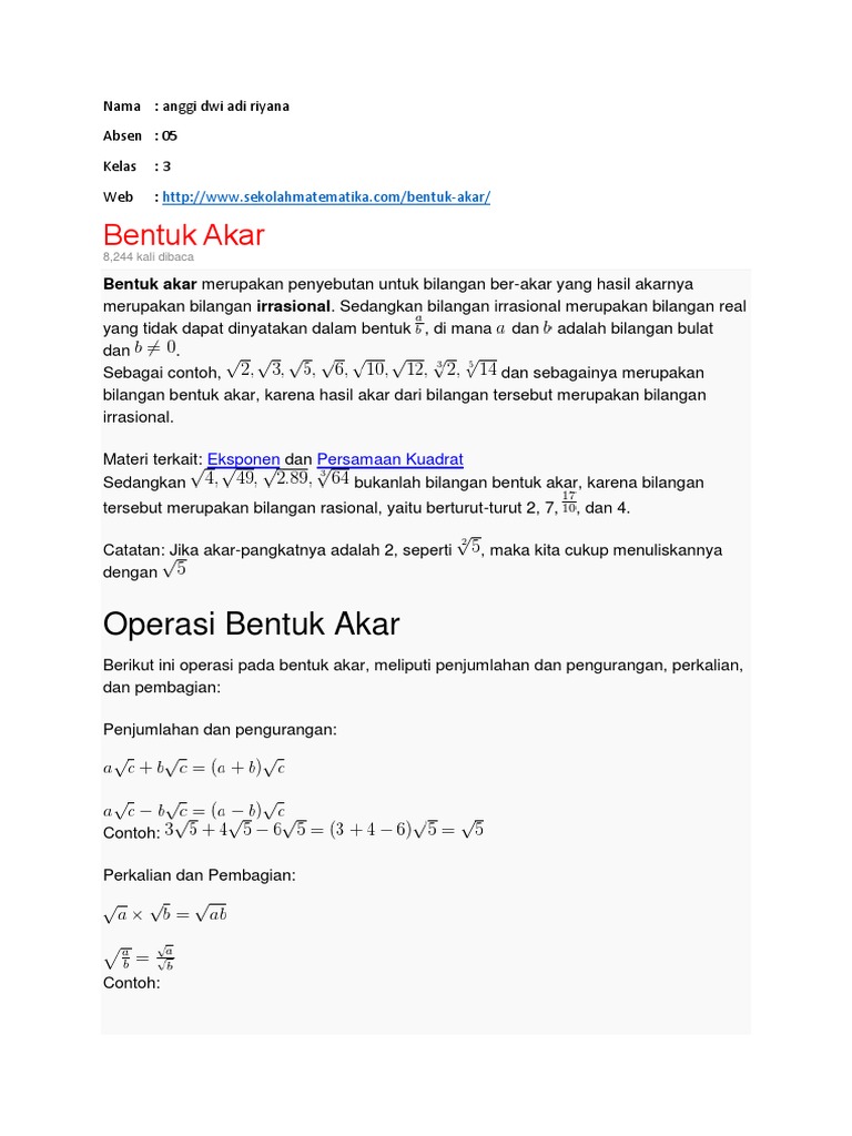Materi Matematika Sd Kelas V Bilangan Kuadrat Dan Bentuk Akar Pangkat Dua Duniamatematika Com