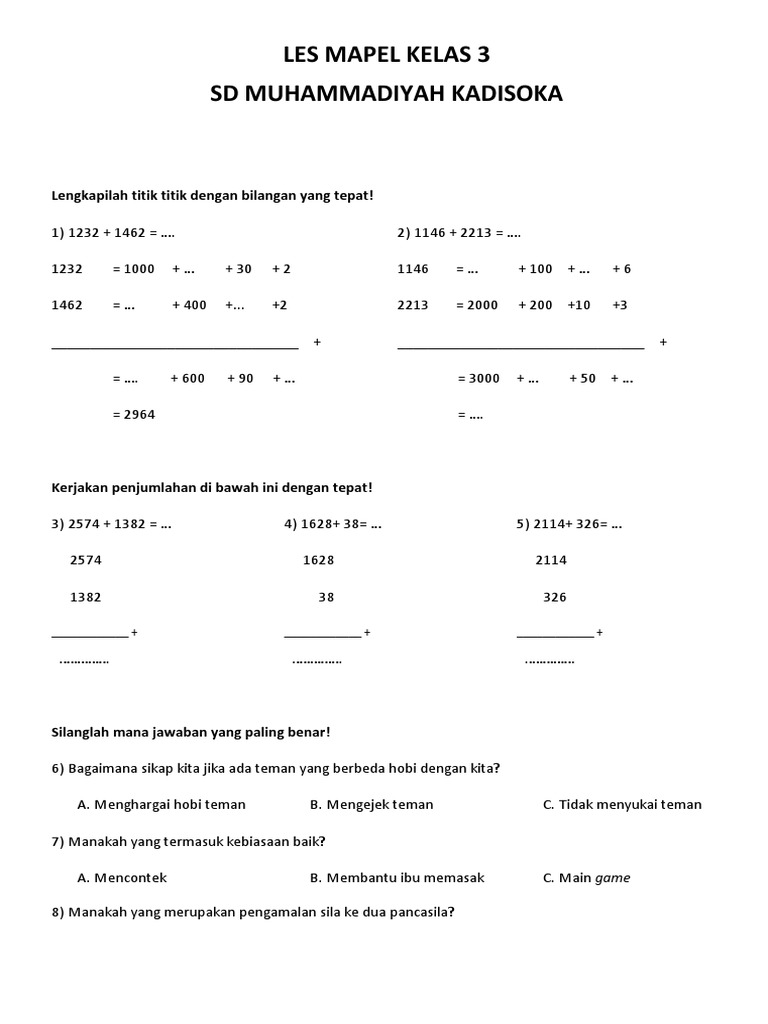 Menyelesaikan Soal Operasi Hitung Campuran Penjumlahan Dan Pengurangan 2 Sd