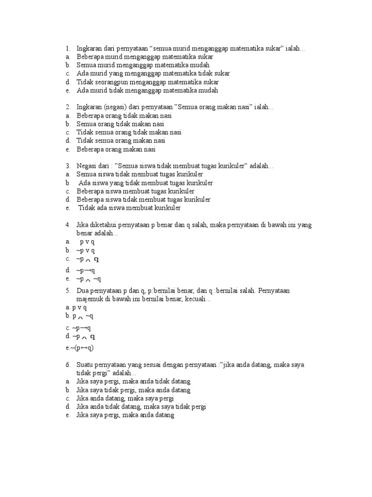 L O G I K A Negasi P Nilainya Berlawanan Dengan Nilai P 2 P Q P Atau Q Bernilai Benar Jika Salah Pdf Document