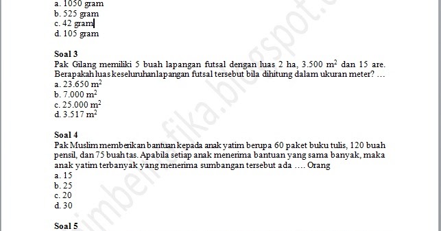 Contoh Soal Cerita Matematika Kelas 6 Sd Dan Jawabannya Guru Ilmu Sosial