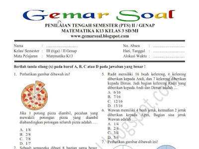 Soal Soal Pecahan Matematika Kelas 3 Semester 2 Sekolahdasar Net