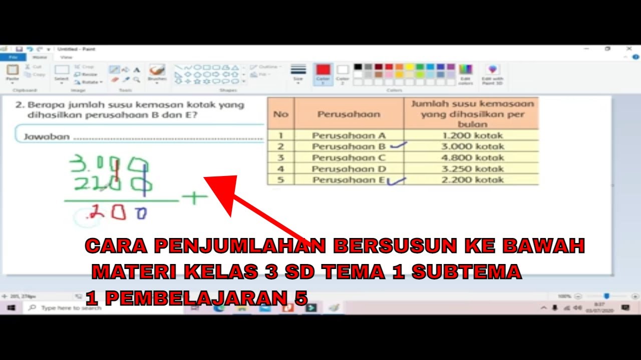 Cara Penjumlahan Bersusun Ke Bawah Materi Kelas 3 Sd Tema 1 Subtema 1 Pembelajaran 5 Youtube