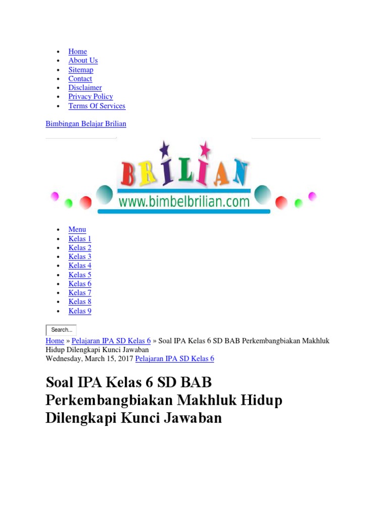 Soal Tematik Kelas 5 Sd Tema 1 Subtema 3 Lingkungan Dan Manfaatnya Dilengkapi Kunci Jawaban Bimbel Brilian