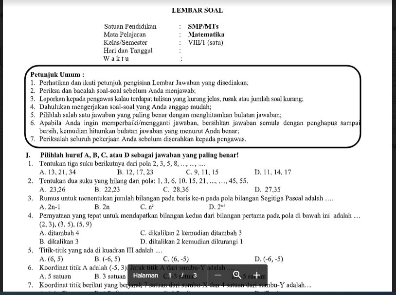 Latihan Soal Dan Jawaban Uts Pts Matematika Kelas 8 Semester 1 Kurikulum 2013 Pendidikan Kewarganegaraan Pendidikan Kewarganegaraan