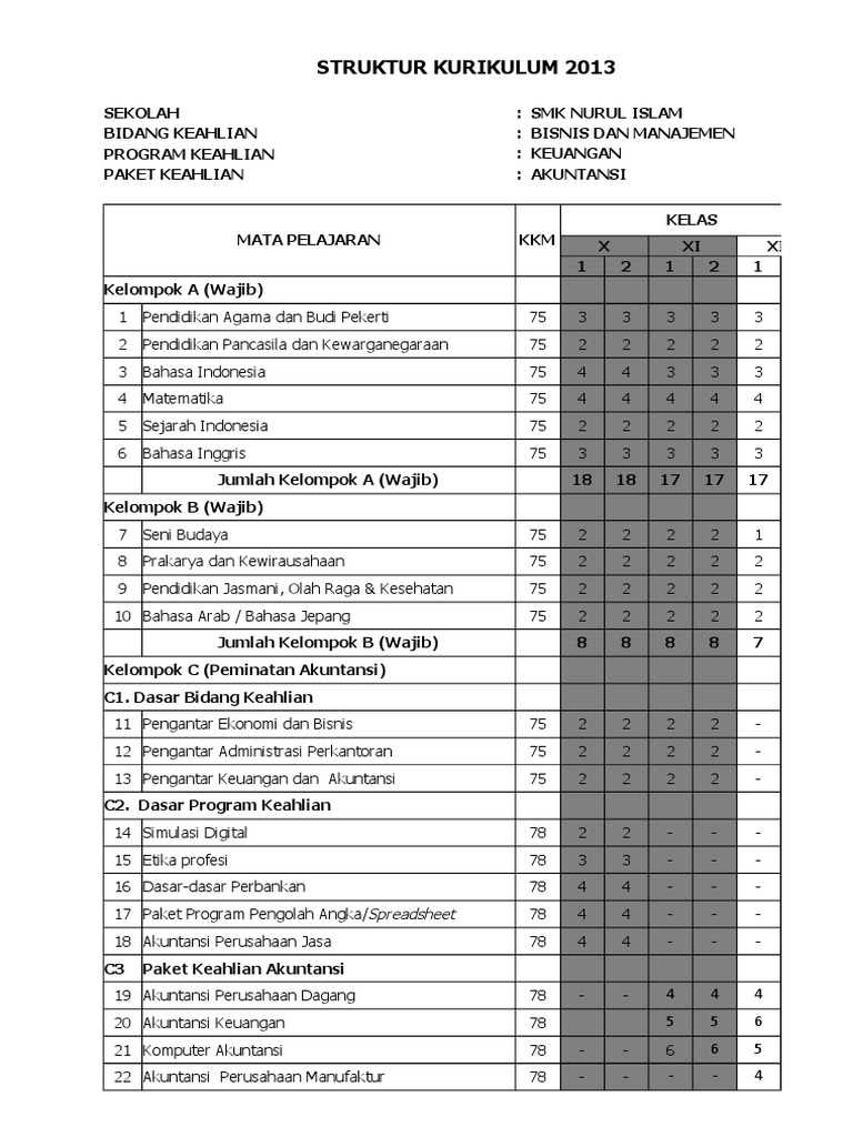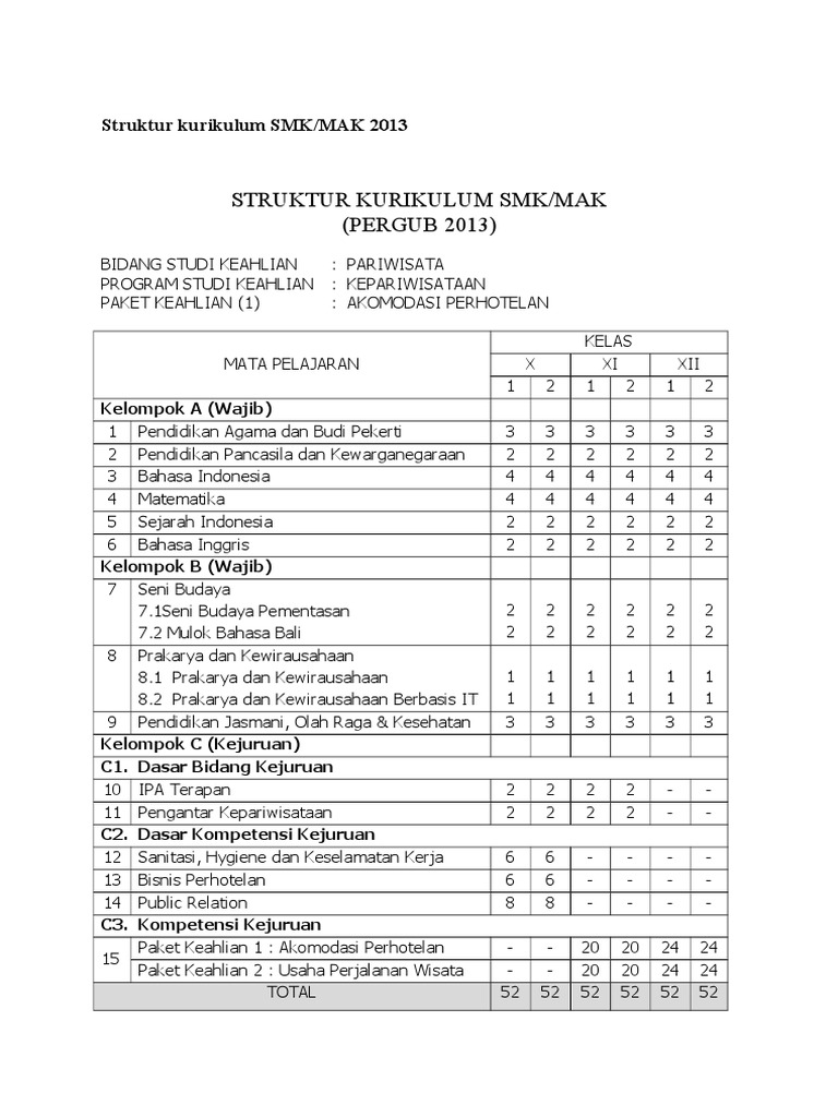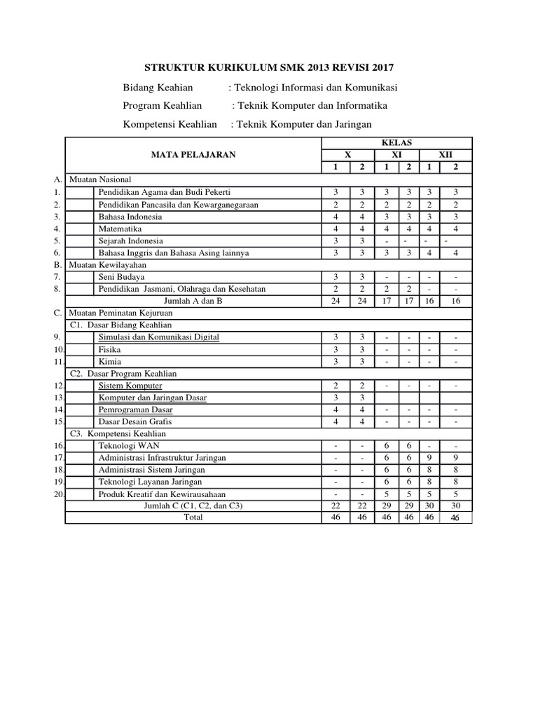 Struktur Kurikulum 2013 Revisi 2016 Smk Berbagai Struktur