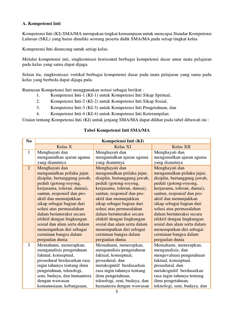 Permendikbud nomor 36 tahun 2018 tentang perubahan struktur kurikulum 2013 sma ma yang tertuang pada permendikbud nomot 59 tahun 2014 dengan adanya penambahan mata pelajaran peminatan informatika. Dokumen ini bisa anda download pada link yang sudah saya sediakan dalam artikel dengan mudah dan gampang dalam bentuk format pdf. Kompetensi inti kami madrasah kompetensi inti sekolah menengah pertamamadrasah tsanawiyah smpmts merupakan tingkat kemampuan untuk mencapai standar kompetensi lulusan skl yang harus dimiliki seorang peserta didik smpmts pada setiap tingkat kelas.