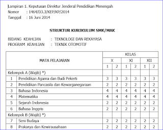 Struktur Kurikulum 2013 Smk Tkj Revisi 2017