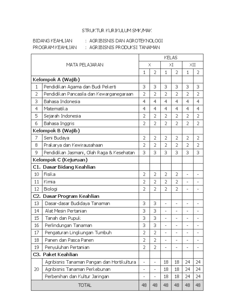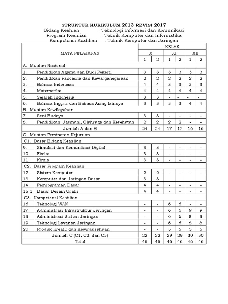 Struktur Kurikulum 2013 Smk Tkj Final Berbagai Struktur