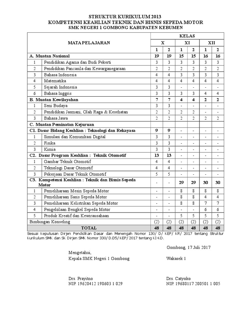 Struktur Kurikulum Smk Mak K 13 Revisi Tkj Smk 1 Sedayu Facebook