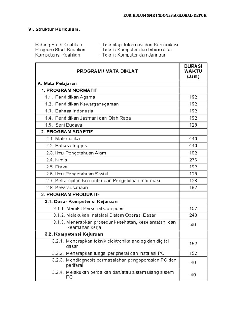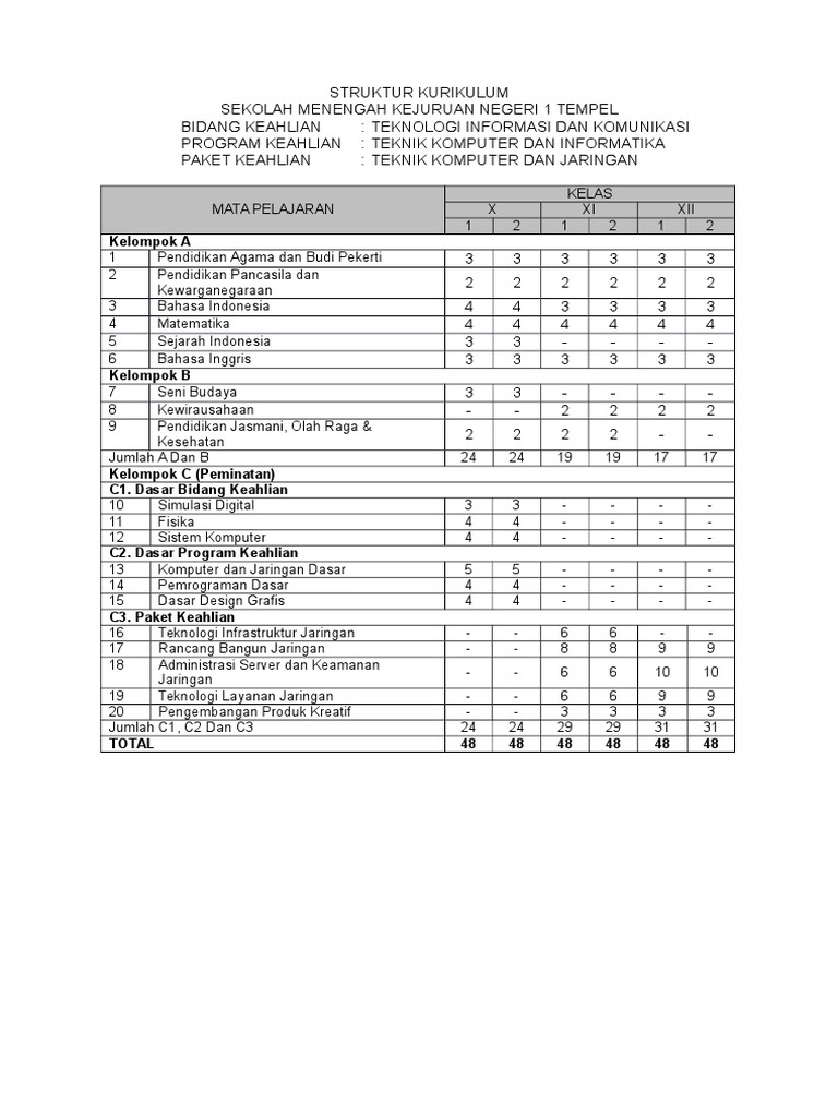 Pdf Struktur Kurikulum Smk Mak Bidang Keahlian Teknologi Informasi Dan Komunikasi Program Keahlian Teknik Komputer Dan Informatika 4 4 4 4 4 4 4 Matematika 4 4 4 4 4 4 5 Sejarah Indonesia 2 2 2 2 2 2 6 Bahasa Inggris 2 2 2 2 2 2 Rinta Ririen