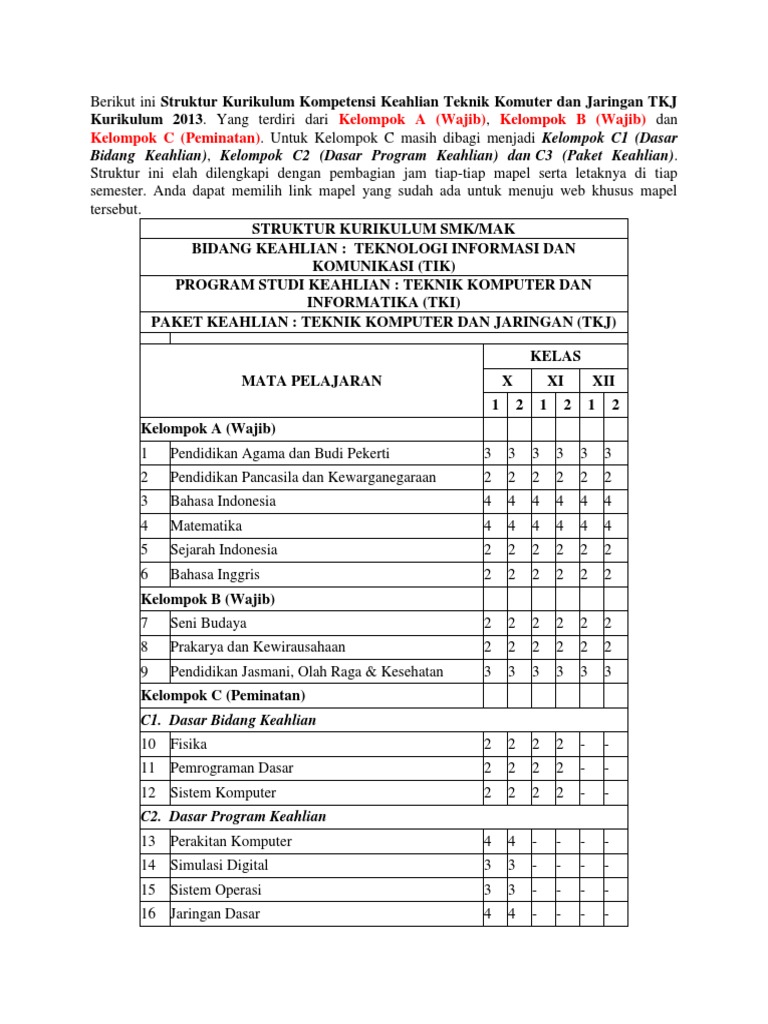 Struktur Kurikulum Tkj 2013 Revisi 2018