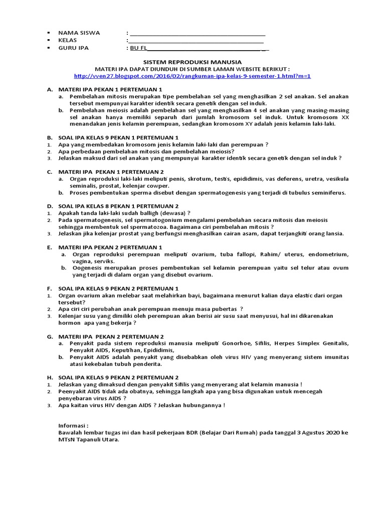 Rpp 1 Lembar Ipa Kelas Ix Smp Mts Tahun 2020 2021 Sinau Thewe Com